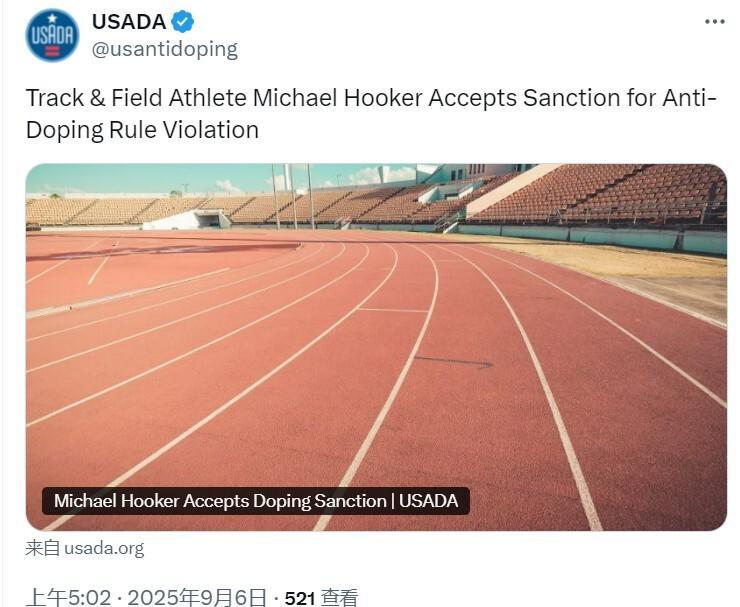 9月9日消息,近期美国反兴奋剂机构的一则公告引发关注,一名69岁的田径运动员迈克尔-胡克,因为多种类固醇检测阳性,而遭到了禁赛3年的处罚。